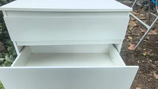Cómoda blanca con 3 cajones amplios. Funciona correctamente y tiene buena capacidad de almacenamiento. 📏 Medidas aproximadas: • Ancho: 90 cm • Fondo: 45 cm • Alto: 80 cm Tiene señales de uso (rayones y pequeños golpes) visibles en las fotos. El cajón inferior tiene la base movida, pero se puede reparar fácilmente o reforzar. Ideal para restaurar, pintar o poner vinilo y dejarla como nueva. Se vende tal cual se ve en las fotos. 💰 Precio NO negociable.