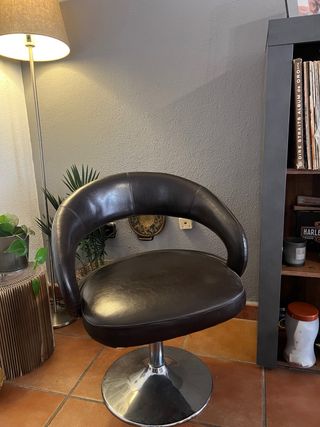 Elegante sillón con un diseño moderno y cómodo. - Tapizado en cuero. - Base metálica giratoria.