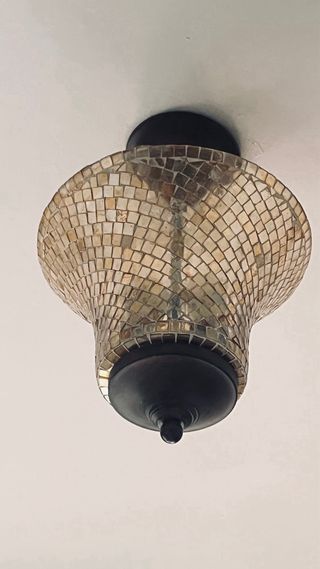 Elegante lámpara de techo con un diseño único. - Pantalla decorada con mosaico de cristal. - Base y detalles en metal. - Tonos dorados y marrones. Venta en persona en malaga marbella fuengirola benalmadena mijas costa etc Oportunidad!! Me mudo vendo todo mira mi perfil y llevate mas cosas por un modico precio gracias