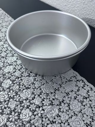Molde antiadherente ideal para bizcochos, tartas y repostería en general. Desmontable para un fácil desmoldado y limpieza. 💰 Precio: 7 € Estado: como nuevo, listo para usar. - Interior y borde metálico plateado. - Mecanismo de cierre lateral para fácil desmontaje.