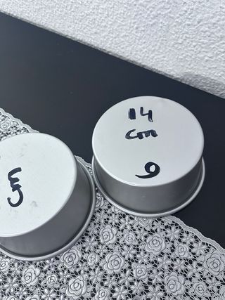 Set de tres moldes redondos para hornear tartas. Ideales para repostería. - Material Aluminio de buena calidad -Medidas de interior: Pequeña 12,5 Altura: 5cm Mediada 17,5 Altura: 7cm Grande 22,5 Altura: 8cm