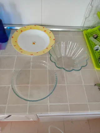 Dos moldes de tarta uno de vidrio apto para horno 24 cm de diámetro. El otro de aluminio desmotable de 22 cm de diámetro. También vendo por separado