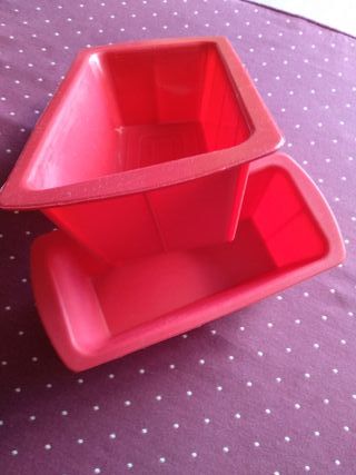 Conjunto de moldes para repostería compuesto de: * Molde rectangular en color rojo de medidas 25 (largo) x 13 (ancho) x 7 (fondo) cm. Sin estrenar. * Molde rectangular en color rojo de medidas 21 (largo) x 10 (ancho) x 6 (fondo) cm. Sin estrenar. * Molde con forma de pino en color rojo de medidas 26 (largo) x 22 (ancho) x 4 (fondo) cm. Sin estrenar. * Molde circular con forma de flor en color azul de medidas 26 (diámetro) x 8 (fondo) cm. * Molde circular en color morado de medidas 26 (diámetro) x 5 (fondo) cm. * Molde circular en color morado de medidas 28 (diámetro) x 3 (fondo) cm. No se venden por separado.