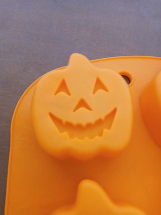 Molde naranja de silicona con motivos de calabazas de Halloween. Nunca se ha usado.