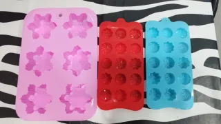 Set de moldes de silicona para crear velas o jabones con diseños de flores y copos de nieve. - Molde grande con 6 cavidades de copos de nieve. - 2 x moldes mediano con 12 cavidades de flores.