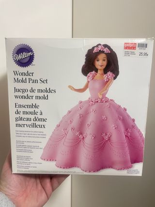 Molde para hornear tartas con forma de princesa, ideal para crear pasteles temáticos. - Fabricado en aluminio para una cocción uniforme. - Diseñado para usar con mezclas de bizcocho de dos capas. - Incluye instrucciones de uso detalladas.