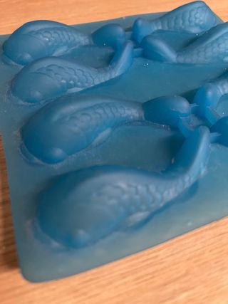 Molde de silicona con forma de peces Koi. - Diseño detallado de pez carpa Koi. Queda forma cilíndrica completa - Ideal para repostería o manualidades. - Tamaño cada pez :7x 3cm