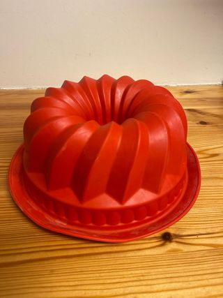 Molde Lekue para preparar bizcochos y postres. Su diseño permite una cocción uniforme. - Fabricado en silicona flexible. - Color rojo vibrante. - Forma acanalada para un acabado decorativo.