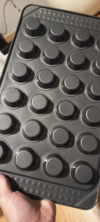 Molde para hornear mini cupcakes. - Fabricado en metal. - Color negro y gris.