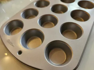 Molde para hornear 24 mini cupcakes de la marca Wilton. Ideal para repostería. 40 cms de largo x 30 cms de ancho - Fabricado en aluminio. - Color gris plateado.