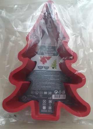Molde repostería con forma de árbol de Navidad. De silicona, nuevo, sin usar. Medidas 28x20 cm