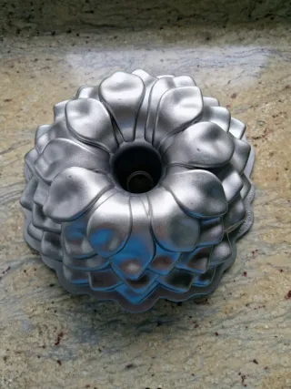 Molde para repostería con un diseño intrincado y elegante. - Forma de flor o pétalos. - Acabado metálico brillante.