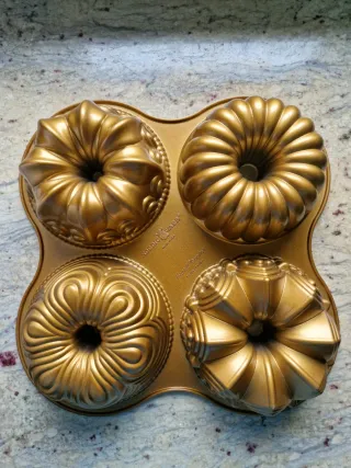 Molde para bizcochos con capacidad de 2,1 litros. - Diseño de cuatro cavidades. - Acabado dorado brillante.