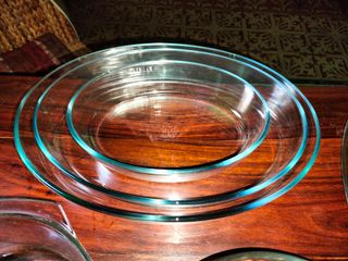 Se vende 8 moldes de Vidrio para pasteleria o otro. ( Aptos para Hornos ). - 3 moldes ovales Pyrex. Nuevos, sin uso. 39 cm x 27 cm. 35 cm x 24 cm. 26 cm x 17 cm. - 1 redondo tipo bol. ( pyrex ) nuevo. 22,5 cm de diametro x 9 cm Alto. - 1 redondo con asas.( Sovirel ). 22 cm diametro x 7 cm Alto. - 1 redondo ( ikea ) nuevo. 23 cm diametro x 6 cm Alto. - 1 bandeja oval ( pyrex ) muy poco uso . 40 cm x 26 cm. - 1 molde rectangular con asas "bizcocho" ( pyrex ). 23 cm x 13 cm x 7 cm Alto. ( pequeño golpe) superficial. Regalo molde metalico nuevo. Envio y recogida local.