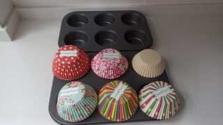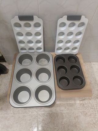 2 moldes de 6 cupcakes cada uno. Regalo envoltorios de colores (son unos 80/100)