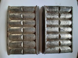 Moldes antiguos para hacer tabletas de chocolate. Se fundía previamente y se llenaban los moldes. 20 x 12 x 2,5 Ctms. 20 Euros ambos moldes.