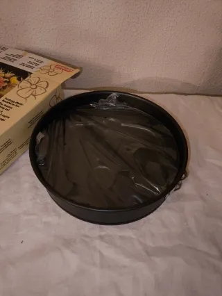 Molde para bizcochos en perfecto estado. Ideal para hornear tus postres favoritos. - Diámetro bandeja 28 cm. Diámetro molde 26 cm - Superficie lisa y brillante