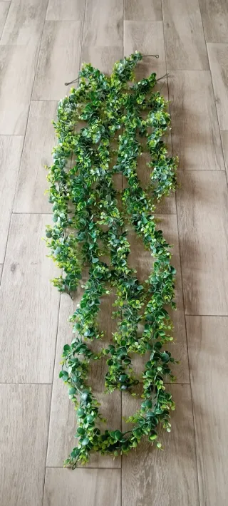 Guirnalda de eucalipto artificial con hojas verdes. Ideal para decorar espacios interiores o exteriores. Son 5 piezas en forma guirnaldas - Hojas de plástico de alta calidad. - Longitud aproximada de (1.50x1metros) - Alambre interior para moldear.