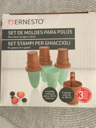Juego de 5 moldes para hacer helados caseros. - Capacidad aproximada de 50 ml por molde. - Reutilizables y fáciles de limpiar. - Crea tus propios helados de forma divertida.