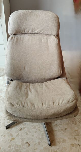Sillón de Ikea giratorio, con un diseño moderno en muy buen estado. - Estructura de metal resistente. - Tapicería de tela en color beige gaspeado - Se desmonta para poder lavar.