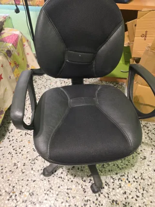 Silla de oficina con un diseño moderno y cómodo. - Respaldo con malla transpirable. - Asiento acolchado. - Base giratoria con ruedas.