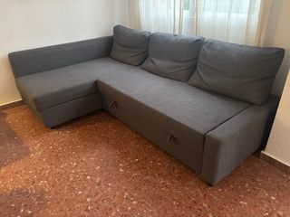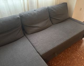 Sofá cama con chaiselongue de Ikea Friheten en color gris. - Precio original 500€ - Tapicería de tela. - Amplio espacio de almacenamiento.