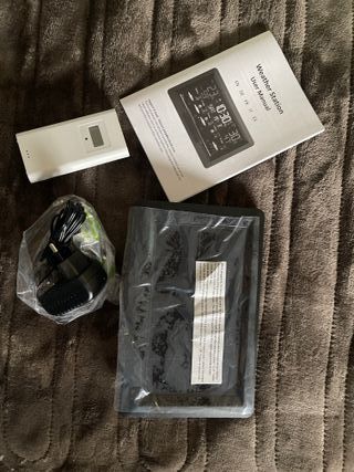 Estación meteorológica con pantalla digital y sensor exterior. - Incluye manual de usuario. - Adaptador de corriente.