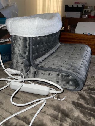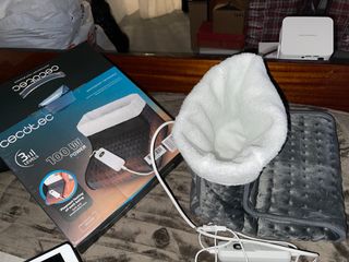 Calentador eléctrico para pies de la marca Cecotec. Ofrece 3 niveles de calor para un mayor confort. - Potencia de 100W. - Diseño interior suave y transpirable. - Control de temperatura con cable.