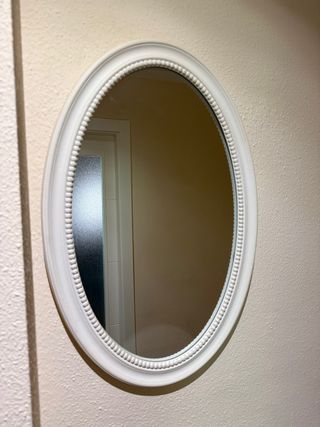 Elegante espejo ovalado con un marco blanco. - Diseño clásico con borde decorativo. - Ideal para cualquier estancia del hogar.
