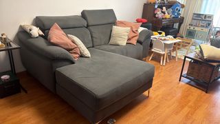 Chaise longue de tela en color gris, en muy buen estado. - Diseño moderno y confortable. - Ideal para salones amplios.