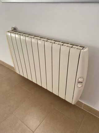 Se venden tres radiadores eléctricos Primer radiador: - NOIROT 500W Ancho: 34cm Alto: 44cm Grosor: 10cm Segundo radiador: - ATLANTIC SOLIUS-2 750W Ancho: 51'5cm Alto: 45cm Grosor: 10cm Tercer radiador: - INERTIE 1000W Ancho: 60cm Alto: 45'5cm Grosor: 10cm • Fabricados en metal y plástico • Color blanco • Muy ligeros (para colgar en pared, con sus respectivos enganches incluidos) Se venden todos juntos, están nuevos! Para tener tu habitación calentita ahora que hace tanto frío, ideal y de poco consumo!