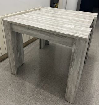 Mesa extensible hasta 252cm idea para espacios pequeños Mesa de comedor con un diseño moderno y elegante. - Acabado en madera con vetas grises y blancas. - Patas robustas para mayor estabilidad.