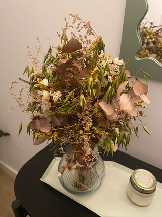 Centro flores secas + jarrón cristal