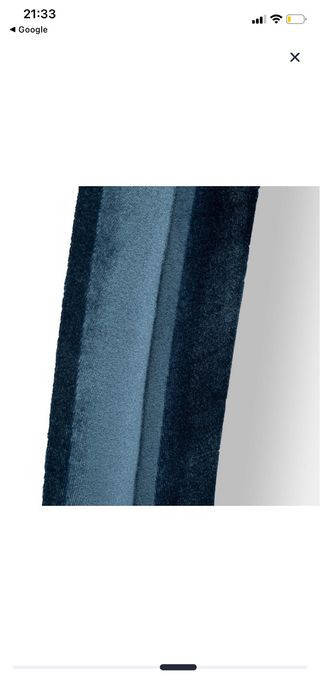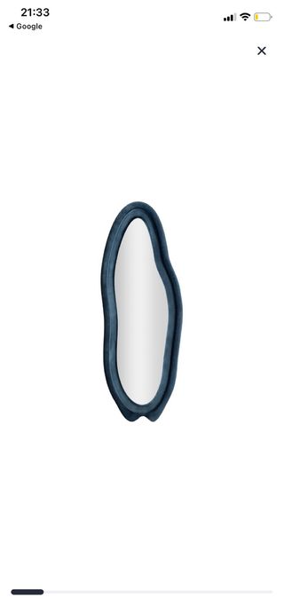 Espejo con un diseño orgánico y moderno, con un marco de terciopelo azul. - Marco de terciopelo. - Cristal de espejo.