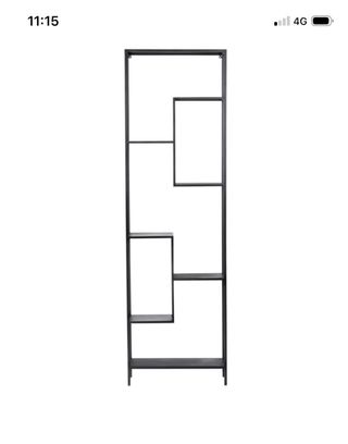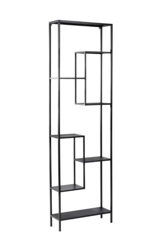 Estantería de diseño con estructura metálica. - Acabado en color negro. - Múltiples niveles y compartimentos. - Ideal para salones o estudios.