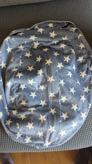 Funda para puff con un divertido estampado de estrellas. - Diseño de estrellas blancas sobre fondo azul / gris. - Tejido suave y agradable al tacto. Nueva a estrenar