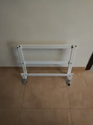 Práctico soporte con ruedas para transportar radiador de una a otra estancia de la casa. - Estructura metálica. - Color blanco.