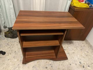 Escritorio de madera con estantes