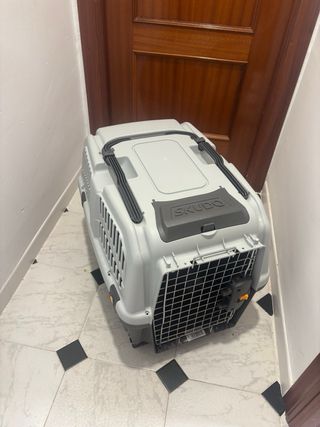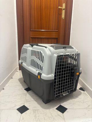 Transportín de plástico resistente para perros o gatos. Ideal para viajes o visitas al veterinario. - Diseño ventilado para mayor comodidad. - Puerta metálica con cierre de seguridad. - Asa superior para facilitar el transporte. -MEDIDAS: 65cm de largo 40cm de ancho 50cm de alto