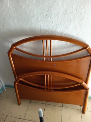 Se vende dormitorio individual completo, ideal para habitaciones pequeñas o para empezar. - Cama de madera con cabecero (50€) - Mesita de noche de madera con tres cajones (20€) - Estantería grande de pared (30€) - Estantería pequeña de pared (5€), hay 4.