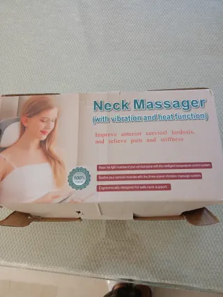 Almohada vibratoria con un diseño ergonómico y un patrón de panal. - Incluye adaptador de corriente. - Etiqueta con certificaciones CE y FC.