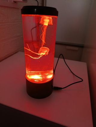 Lámpara de lava decorativa con un diseño moderno. - Base negra. - Cilindro de cristal con líquido rosa. - Efecto de burbujas. - Iluminación LED integrada con varios colores