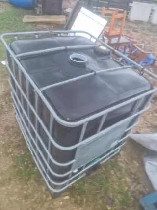 Contenedor de 1000 litros para agua potable. Su diseño opaco protege el contenido de la luz. - Capacidad: 1000 litros. - Material: Plástico opaco. - Estructura metálica de protección.