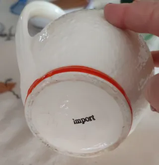 Jarra de cerámica blanca con detalles naranja