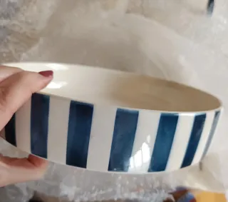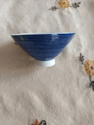 Cuenco de porcelana azul con rayas