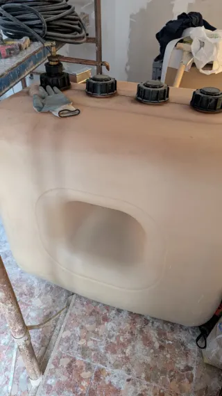 Depósito de fibra de vidrio con capacidad para 600 litros, apto para el almacenamiento de agua. - Material: Fibra de vidrio. - Capacidad: 600 litros. - Uso: Apto para agua.potable