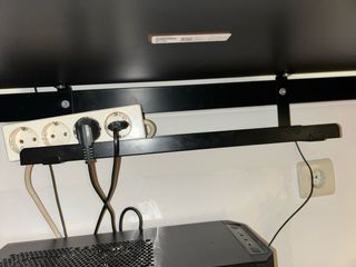 Escritorio de estilo gamer con estructura metálica. - Diseño moderno. - Patas de metal y regulables en altura - Repisa para guardar los cables - tiene una barra al fondo a doble altura 120cm largo 60cm ancho NO SE ENVIA