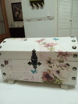 Baúl pequeño decorado flores y mariposas