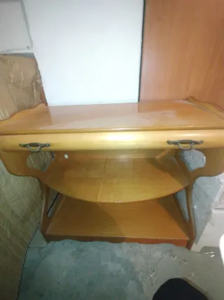 Mesa camarera antigua madera y cristal