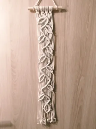 Bonito tapiz decorativo hecho a mano con un diseño de macramé. Longitud 55cm. - Colgante de pared con varilla de madera. - Elaborado con cuerdas de algodón.